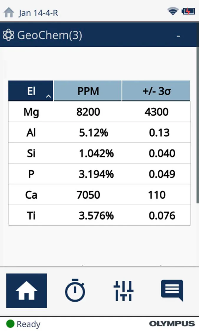 在計算元素含量的同時,奧林巴斯Vanta手持式XRF光譜儀還可以實時計算這些礦物質和化合物的含量。通過便攜式光譜分析儀易于使用的用戶界面,用戶可以將光譜儀設置為將計算出的含量報告為化合物,如圖2所示。Vanta便攜式光譜分析儀的軟件可以進行這種計算,而且只需幾秒鐘就可以完成在元素報告和化合物報告之間的切換。