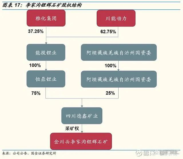 四川能投鋰業(yè)控制的德鑫礦業(yè)擁有李家溝鋰礦采礦權,2021年,川能動力以9.27億元完成對四川能投鋰業(yè)62.75%股權的收購,剩余股權(37.25%)歸屬于雅化集團。