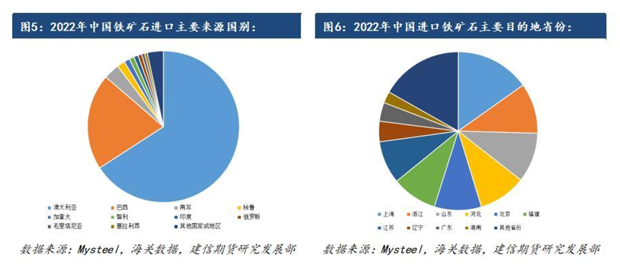 近年來,我國進口塊礦和已燒結的鐵礦砂及其精礦占比整體呈現波動向下的趨勢;而鐵精粉的占比變化正好與塊礦和已燒結的鐵礦砂及其精礦相反,近年來鐵精粉占比除個別年份外,整體上逐步上升。