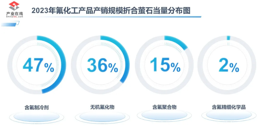 2023年含氟制冷劑產(chǎn)銷規(guī)模折合螢石當量約235.7萬噸,消費占比47%。含氟制冷劑應用于冰箱、空調、冷庫等制冷設備,另外部分含氟制冷劑單質也是含氟高分子材料的主要原材料。