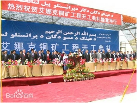 根據(jù)最終簽署的協(xié)議,艾娜克銅礦項目生產(chǎn)規(guī)模為年產(chǎn)精煉銅22萬噸(計劃擴大到年產(chǎn)30萬噸),項目建設(shè)期5年,開采期限30年。配套設(shè)施包括一個40萬千瓦的火電廠、一個水源地泵站和一個磷肥廠,以及學校、醫(yī)院、清真寺等公共服務(wù)設(shè)施,還計劃修建鋼廠和鐵路等。總投資將超過100億美元。