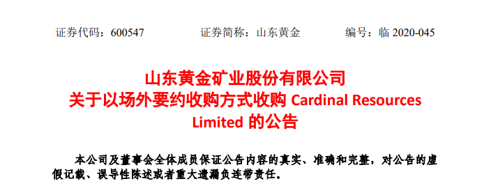 值得關(guān)注的是,2020年,山東黃金公司的境外全資子公司山東黃金礦業(yè)(香港)有限公司(簡(jiǎn)稱“山東黃金香港”)經(jīng)過和包括俄羅斯黃金巨頭諾德黃金(Nordgold)在內(nèi)的多家公司競(jìng)爭(zhēng),最終和卡帝諾資源有限公司簽署《要約實(shí)施協(xié)議》,以場(chǎng)外要約收購(gòu)方式向持有卡帝諾全部已發(fā)行股份的股東發(fā)出場(chǎng)外附條件要約收購(gòu),從而獲得了其位于加納的Namdini金礦項(xiàng)目的開采權(quán)。這也是山東黃金在西非加納擁有的首個(gè)黃金礦業(yè)項(xiàng)目。
