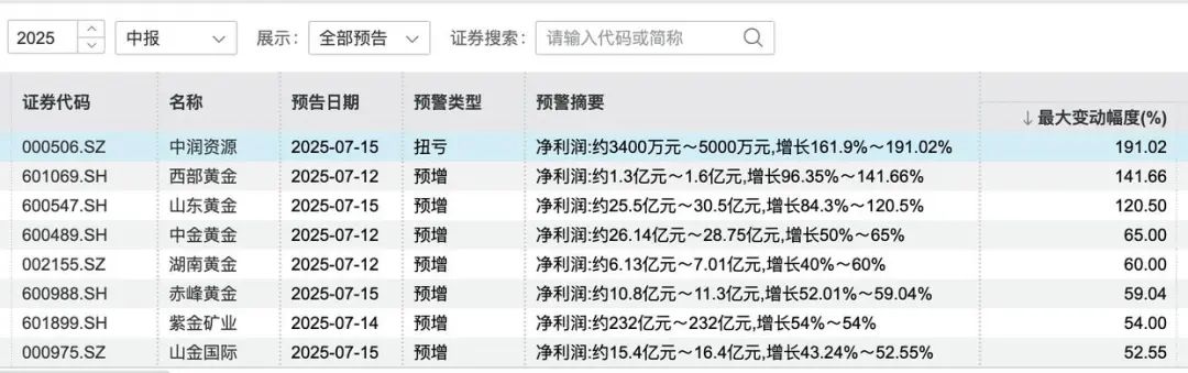 上半年凈利預增超300億,8家金礦股“賺翻”了!