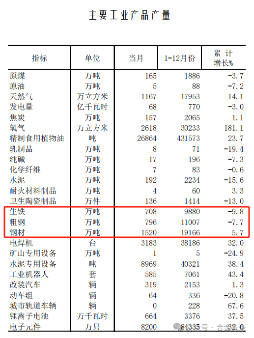 ○生產(chǎn)端呈現(xiàn) “減量提質(zhì)” 態(tài)勢:生鐵9880萬噸(-9.8%)、粗鋼11007萬噸(-7.7%)、鋼材19166萬噸(+5.7%)。