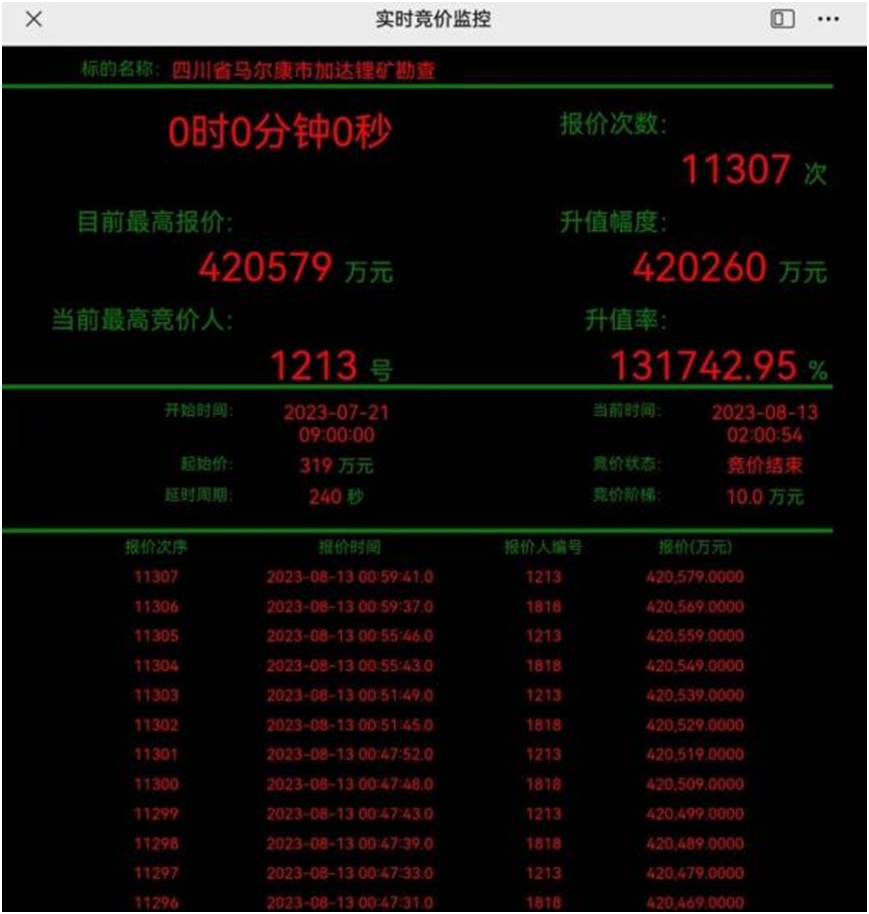 鏖戰(zhàn)三天三夜,四川省馬爾康市加達(dá)鋰礦勘探權(quán)拍賣塵埃落定,最終大中礦業(yè)力壓群雄拔得頭籌